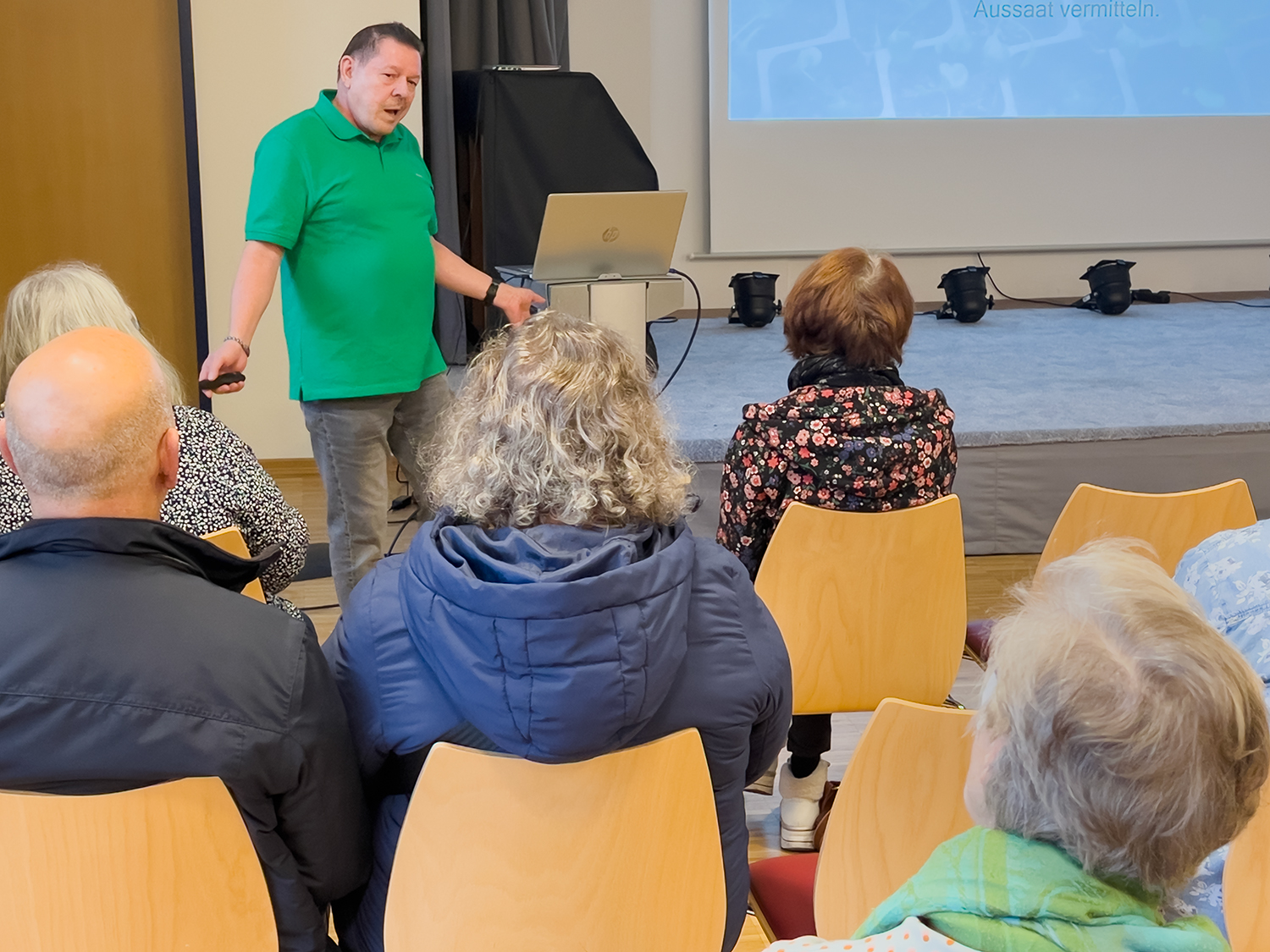 Etwa 20 Personen hatten das Angebot wahrgenommen, sich über das Tun und Lassen im Zusammenhang mit der Aussaat im heimischen Garten informieren zu lassen.