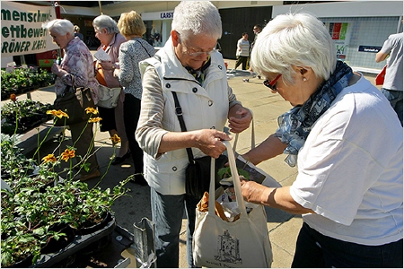 Bei schönstem Frühlingswetter verschenkte der Grüne Kreis Bremerhaven am Sonnabend, 7. Mai 2016, vor der Karstadt-Filiale Sommerpflanzen an die Passanten. 300 Pflanzen hatte der Wirtschaftsverband "Gartenbau" gespendet.