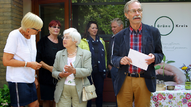 Von links Jessica Claudia Link (Leiterin der städtischen Kindertagesstätte 'Neidenburger Straße'), Ursula Stumheit-Hübner (Beisitzerin des Grünen Kreises Bremerhaven), Barbara Sandmann (2. Vorsitzende des Grünen Kreises Bremerhaven), Sandra Charlet (Schriftführerin des Grünen Kreises Bremerhaven), Wilfried Töpfer (1. Vorsitzender des Grünen Kreises Bremerhaven) und Christian Bruns (Vorstandsmitglied der Bremerhavener Bürgerstiftung). (5/29) |