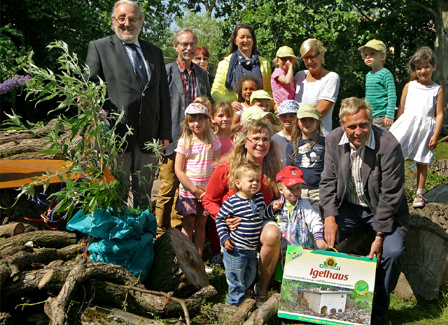 Sieger und Veranstalter im Bild. Hinten links Stadtrat Klaus Rosche, neben ihm Christian Bruns (Vorstandsmitglied der Bremerhavener Bürgerstiftung) Ursula Stumheit-Hübner (Beisitzerin des Grünen Kreises Bremerhaven) und Sandra Charlet (Schriftführerin des Grünen Kreises Bremerhaven). Vorne rechts Wilfried Töpfer, 1. Vorsitzender des Grünen Kreises Bremerhaven. Zwischen ihnen Kinder und Erzieherinnen. (20/29) |