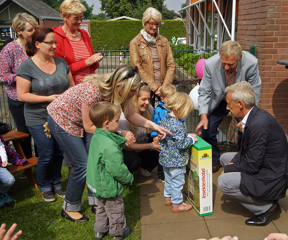 Verleihung des 1. Preises, eines großen Insektenhotels für das Außengeländes der Krippe St. Ansgar. (16/24)