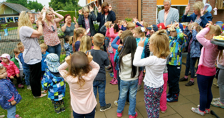 Die größeren Kindergartenkinder verstärken die Krippenkinder bei deren Darbietung. (19/24)