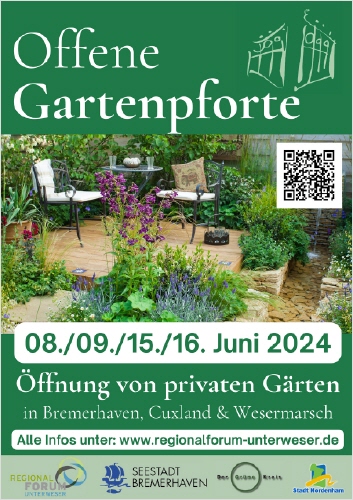Aus der Stadt Bremerhaven sowie den Landkreisen Wesermarsch und Cuxhaven laden Gartenbesitzerinnen und Gartenbesitzer Gäste in ihre privaten Gärten ein und präsentieren die große Gartenvielfalt der Region. Das Gemeinschaftsprojekt wird vom Regionalforum Unterweser, dem Gartenbauamt Bremerhaven und dem Grünen Kreis Bremerhaven realisiert und in diesem Jahr federführend von der Stadt Nordenham begleitet.