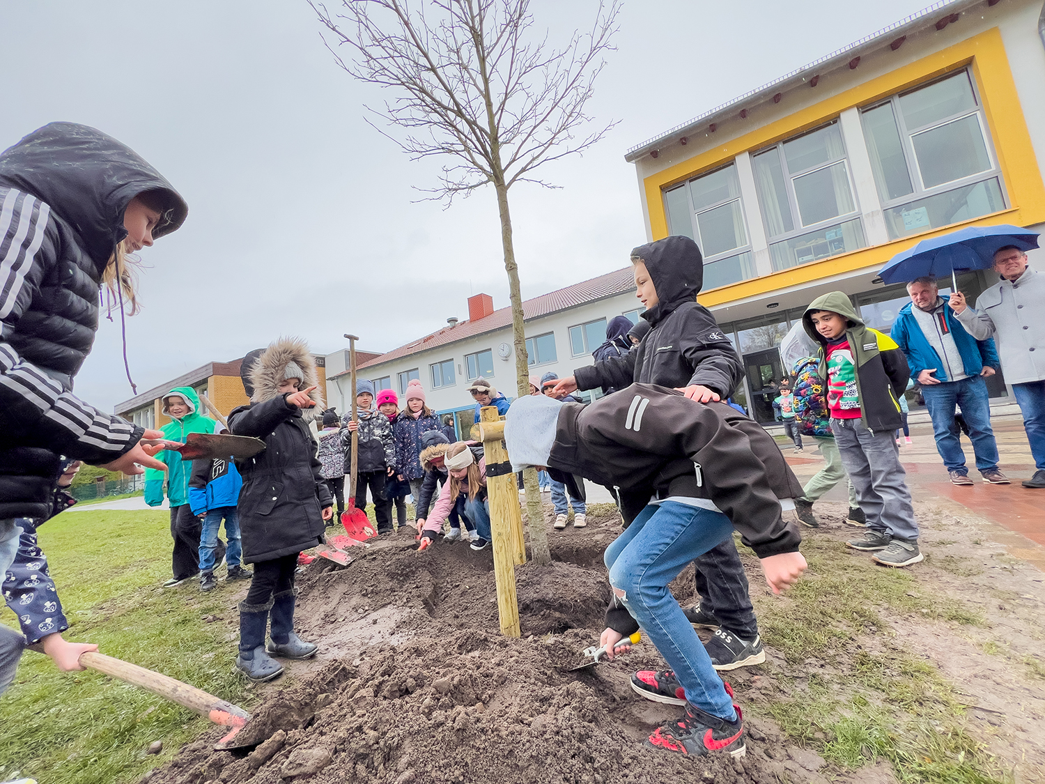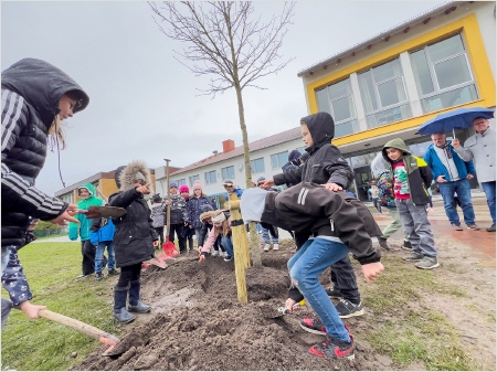 Wie schon in den Jahren zuvor führte der Grüne Kreis Bremerhaven gemeinsam mit dem Gartenbauamt eine Pflanzaktion durch. Für den Grünen Kreis Bremerhaven ist es das 41. Mal, dass er an oder bei Kitas und Schulen das Pflanzen von Bäumen unterstützt, ist es doch gerade in den heutigen Zeiten des Klimawandels nötig, Bäume und Sträucher zu erhalten, aber auch neu zu pflanzen.