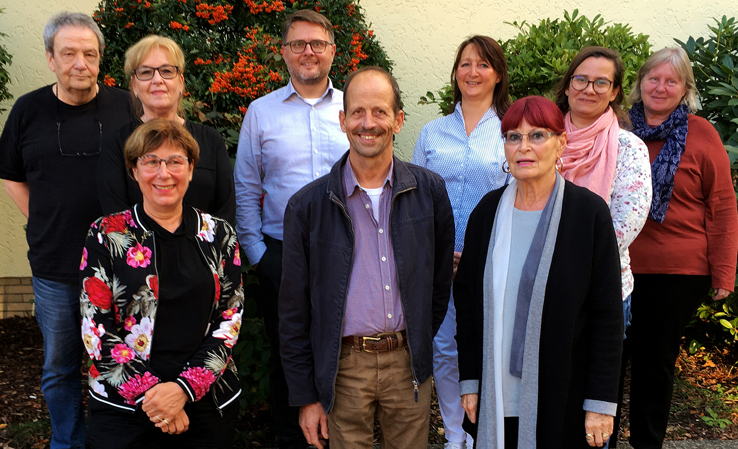 Das Bild zeigt die Mitglieder des Vorstandes. Vorne von links Sybille Böschen (1. Vorsitzende), Hubert Paetz (2. Vorsitzender), Ursula Sturmheit-Hübner (Beisitzerin). Hinten von links Michael Müllner (Beisitzer), Sabine Markmann (Beisitzerin), Olaf Seemann (Schatzmeister), Sandra Charlet (Schriftführerin), Sabrina Czak (Beisitzerin), Monika Ahlers (Beisitzerin).