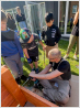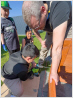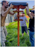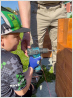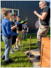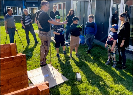 Dirk Lammers (faden gGmbH, links im Vordergrund) bereitet einige der Schulkinder auf das handwerkliche Tun vor. Hinten von links: Hubert Paetz (2. Vorsitzender des Grünen Kreises), Wilfried Töpfer (Ehrenvorsitzender des Grünen Kreises), Nadine Porwoll (Leiterin der NGL) und Sabrina Czak (Beisitzerin des Grünen Kreises und Geschäftsführerin der faden gGmbH).