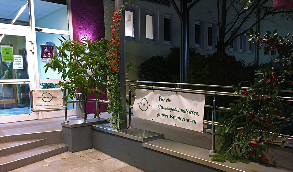 Der Eingang des Hauses am Blink wies auf die Jubiläumsfeier des Grünen Kreises hin. (Anklicken zum Vergrößern)