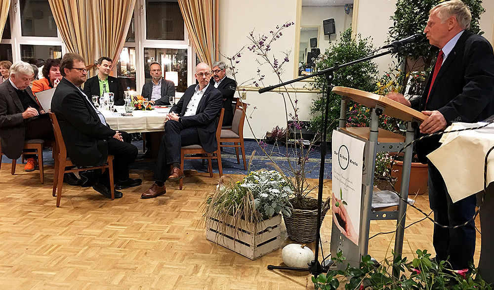 Den Festvortrag hielt Prof. Dr. rer. hort Klaus Neumann, der Präsident der Deutschen Gartenbau-Gesellschaft von 1822 e.V. Die Deutsche Gartenbau-Gesellschaft (DGG) leistete bei der Gründung des Grünen Kreises Bremerhaven idelle Mithilfe. Damaliger Präsident war Graf Lennart Bernadotte. Der Vortrag hatte den Titel "Bewahrung der Schöpfung - „In dubio pro natura" - Herausforderungen an urbane Grün- und Freiflächen".