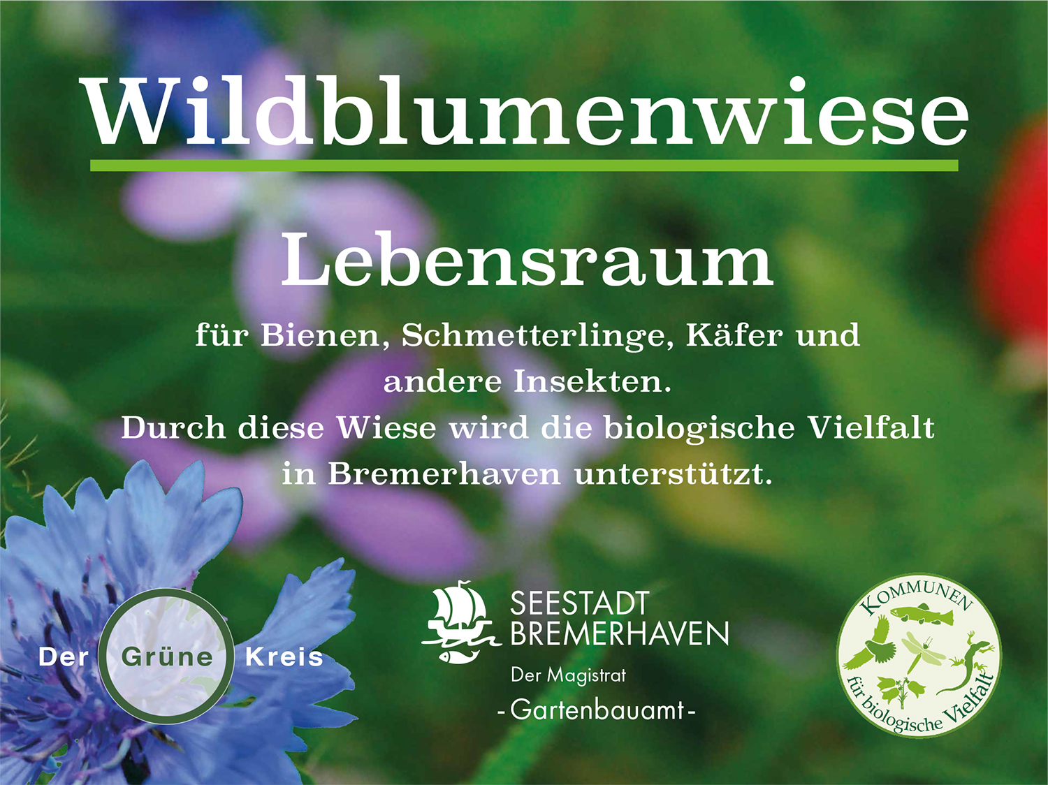 Mit finanzieller Unterstützung des Grünen Kreises Bremerhaven legte das Gartenbauamt im September 2020 auf dem Waldemar-Becké-Platz auf einer Fläche von 200 Quadratmetern eine Wildblumenwiese an. Ausgesät wurde eine Saatgutmischung mit zertifizierten Wildpflanzensaaten „Schmetterlings- und Wildbienensaum“ aus dem nordwestdeutschen Tiefland (Ursprungsgebiet 1). Diese Blühwiese wurde am Freitag, 28. Mai, eingeweiht.