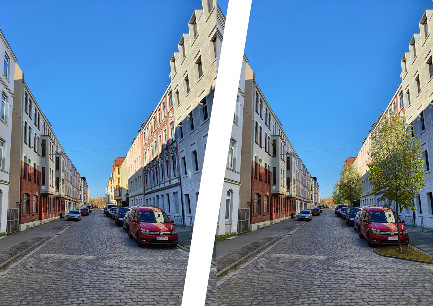 Per Computer lässt sich bereits heute erahnen, wie es nach Pflanzung der Klimabäume in der Heinrichstraße einmal aussehen könnte. (Foto: Gartenbauamt / Markus Lüsse)