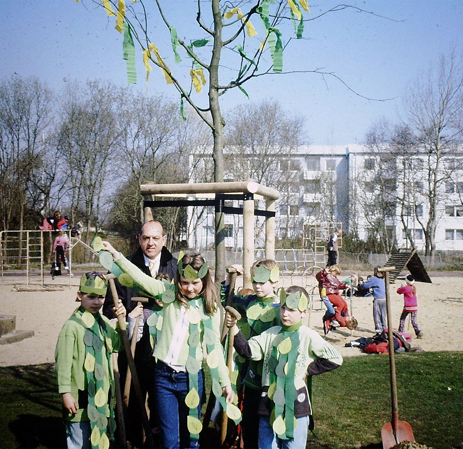 Im Jahre 1952 beschlossen die Vereinten Nationen einen „Internationalen Tag des Baumes“, der in jedem Jahr im April gefeiert werden sollte. Seit Beginn der 60er-Jahre nimmt der „Grüne Kreis“ an dieser Aktion teil. In Zusammenarbeit mit dem Gartenbauamt werden jeweils in einer kleinen Feierstunde in von Jahr zu Jahr wechselnden Schulen, auf Kinderspielplätzen oder in Kindertagesstätten kleine Bäume gepflanzt. Die Kinder studieren oft Lieder ein („Ich bin der Baum vor Deinem Haus“), basteln Papierblumen o. ä., um diese dann an die neu gepflanzten Bäume zu hängen. Natürlich werden auch Reden gehalten, um die Kinder auf die Schutzbedürftigkeit und den Nutzen eines Baumes hinzuweisen. Es ist jedes Mal ein wunderschönes Bild, wenn die „Zwerge“ mit riesengroßen Schaufeln hantieren, sich dabei gegenseitig die Spaten streitig machen, um den Mutterboden in die Pflanzmulden zu schippen.